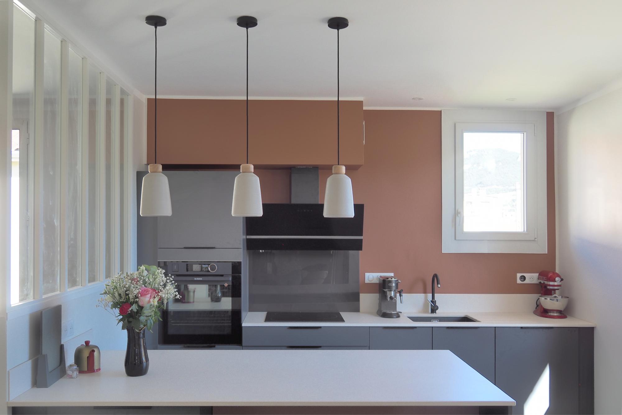 Décloisonnement des pièces de vie et mise en place d'une verrière pour créer un espace lumineux.